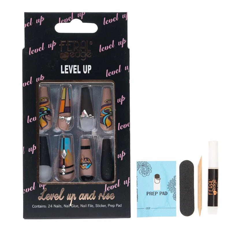 CONTAINS 24 NAILS + NAIL GLUE + NAIL FILE + PREP PAD + MANICURE STICK